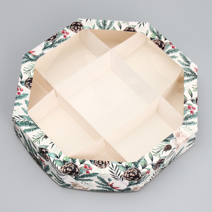 Коробка складная «Хлопок, хвоя, шишки», 27 х 27 х 5 см — Характеристики