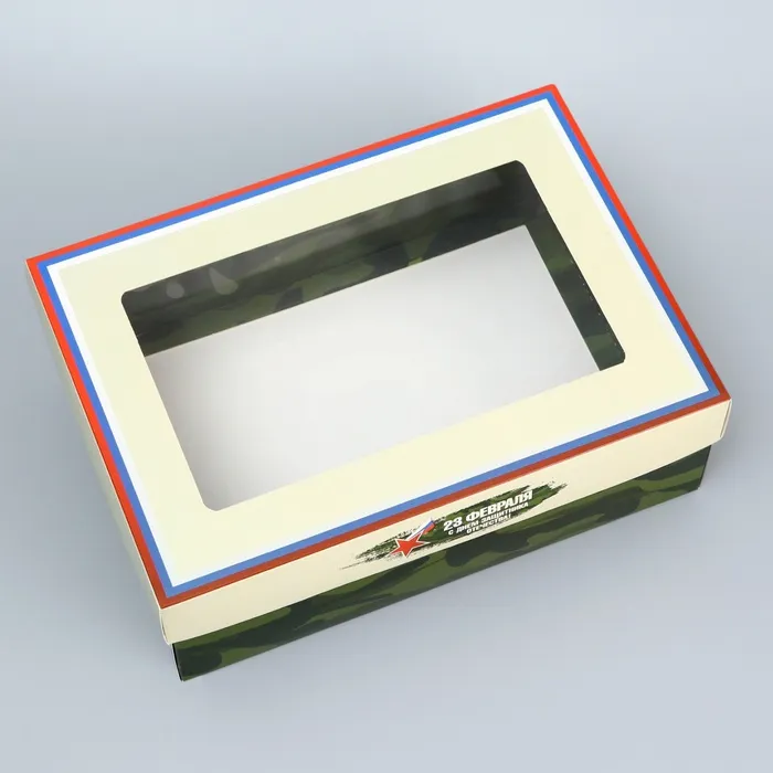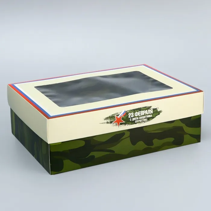 Коробка складная, крышка-дно, «23 Февраля», 24×17×8 см с окном — Характеристики