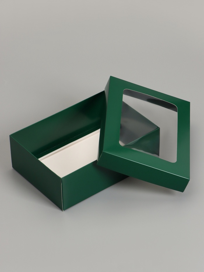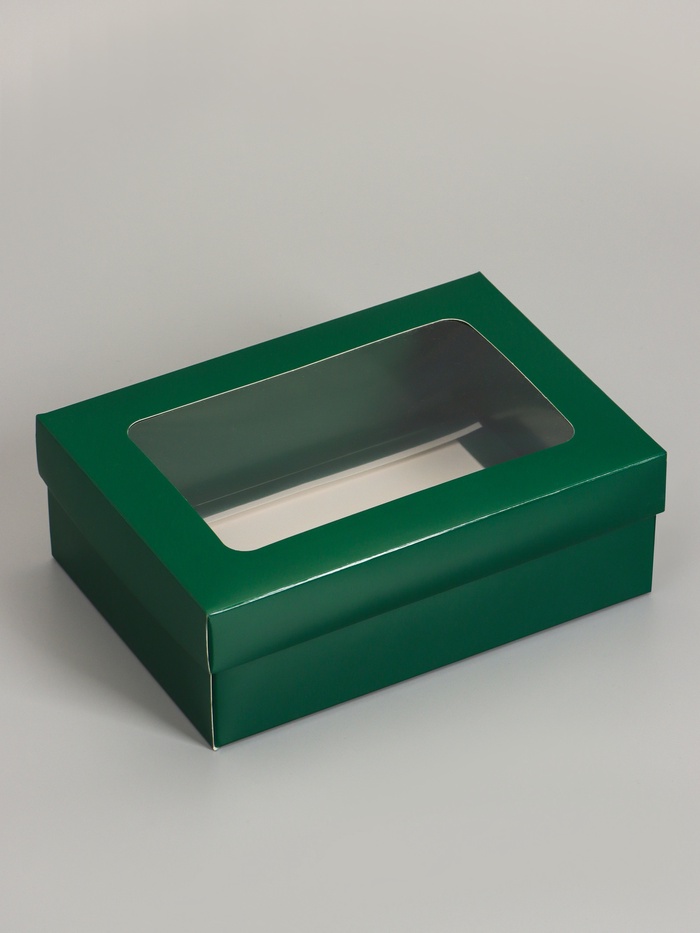 Коробка складная, крышка-дно «Армейский зелёный», с окном 21×15×7 см — Характеристики