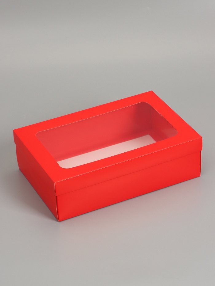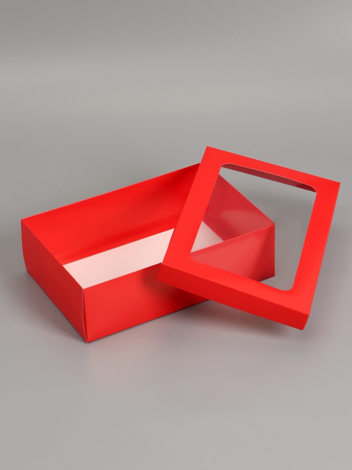 Коробка складная, крышка-дно «Красная», с окном 30×20×9 см — Характеристики