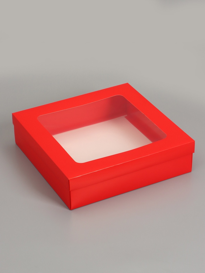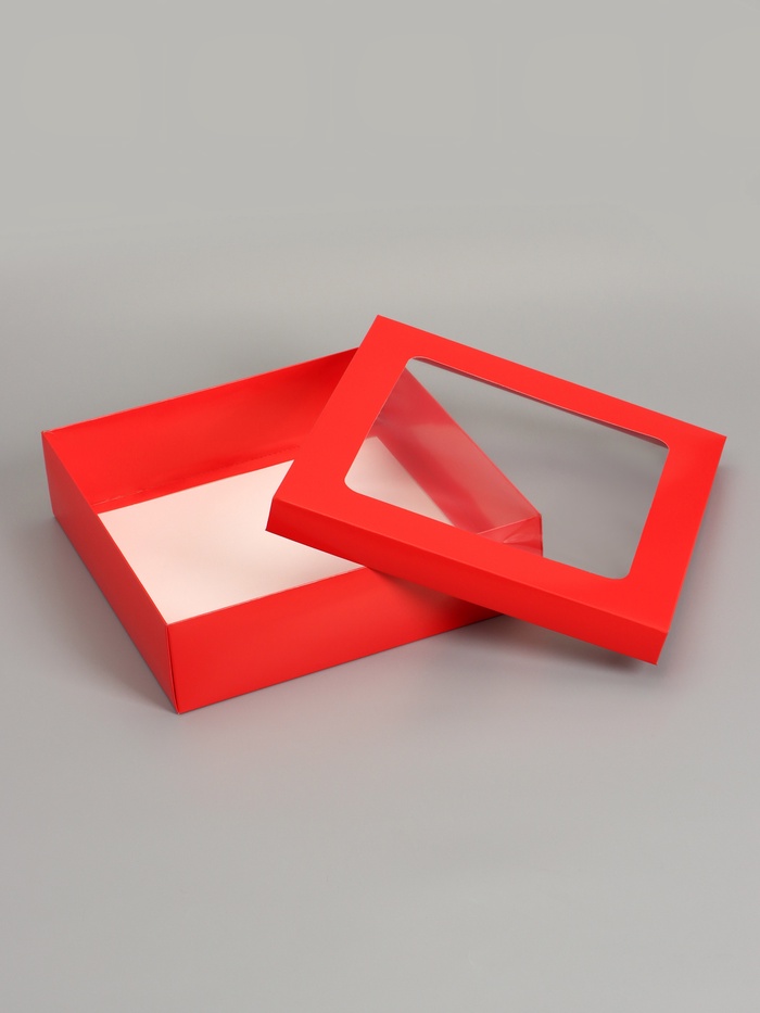 Коробка складная, крышка-дно, красная, с окном, 30×30×8 см — Характеристики