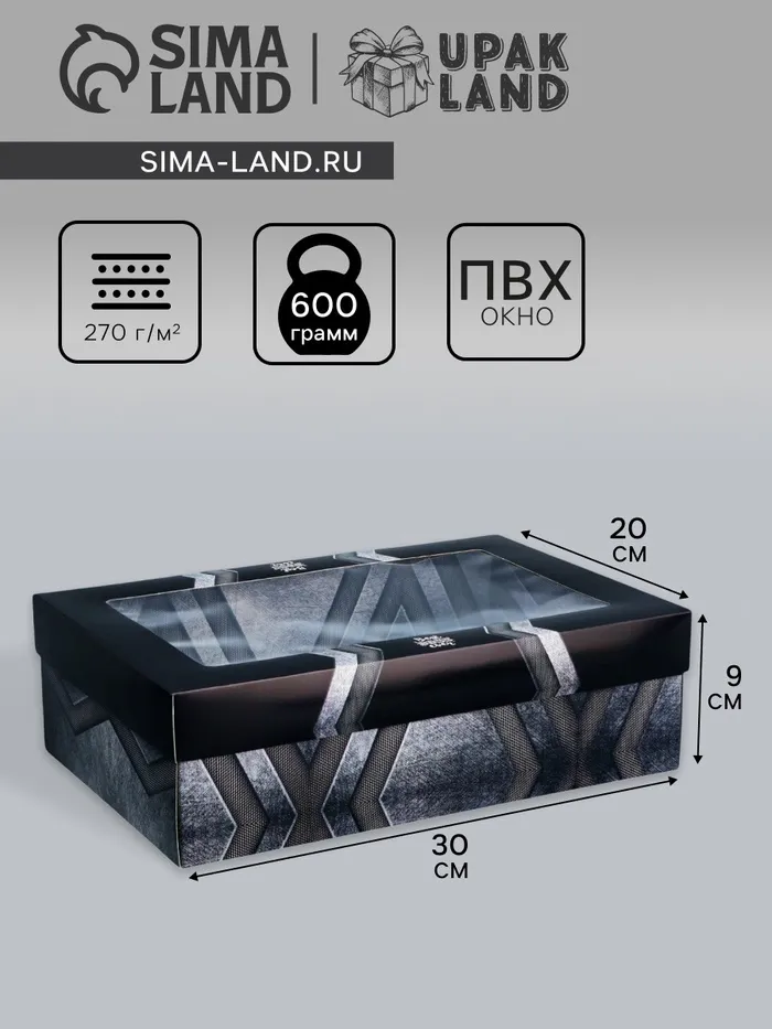 Коробка складная, крышка - дно, «Настоящему мужчине», 30×20×9 см с окном — Характеристики