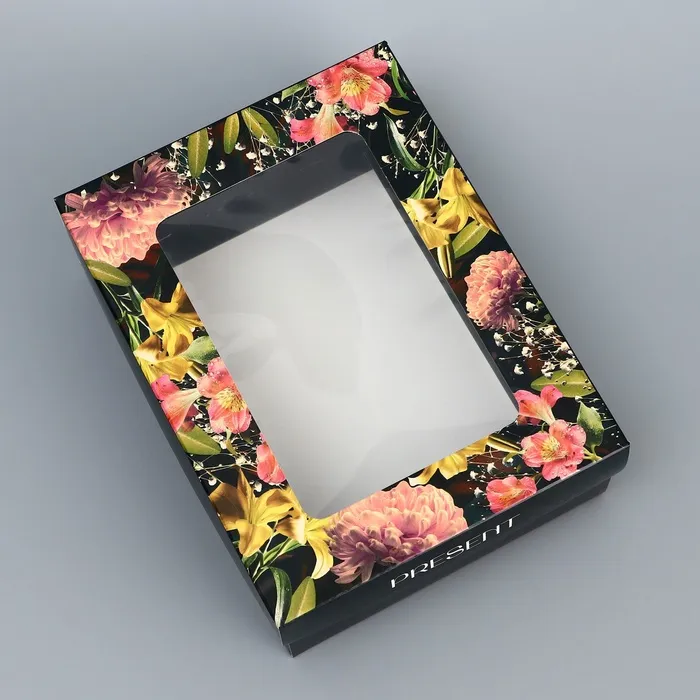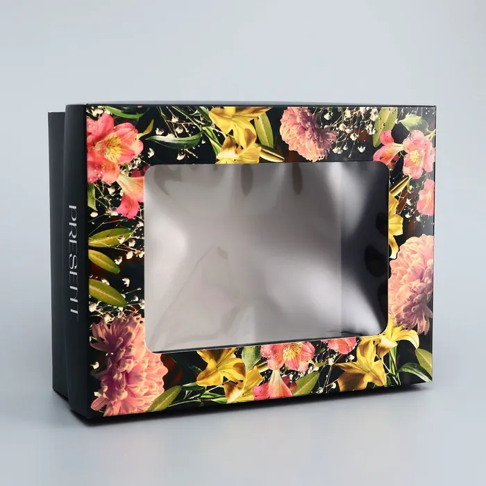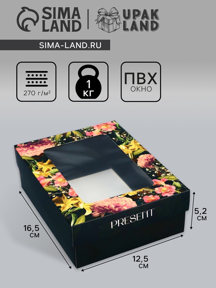 Коробка складная, крышка-дно, Present, 16.5×12.5×5.2 см с окном — Характеристики