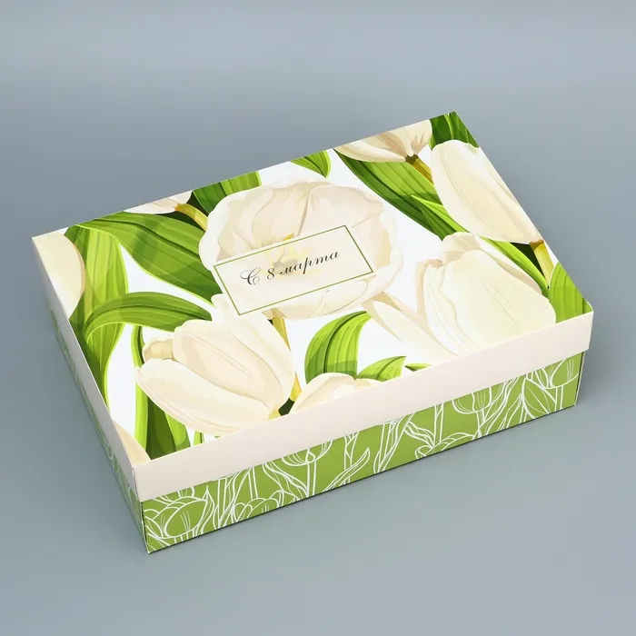 Коробка складная, крышка-дно, «С 8 марта», 30×20×9 см без окна — Характеристики