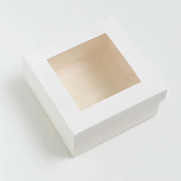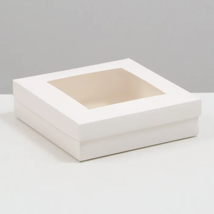 Коробка складная, крышка - дно, с окном, белая, 10×10×5 см — Характеристики