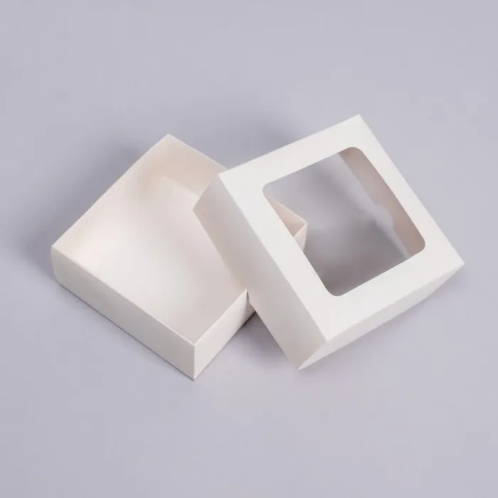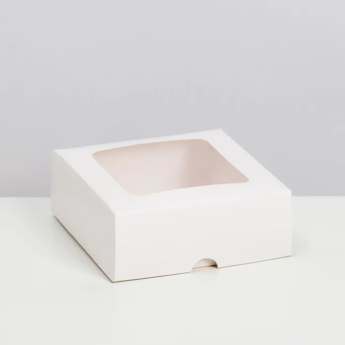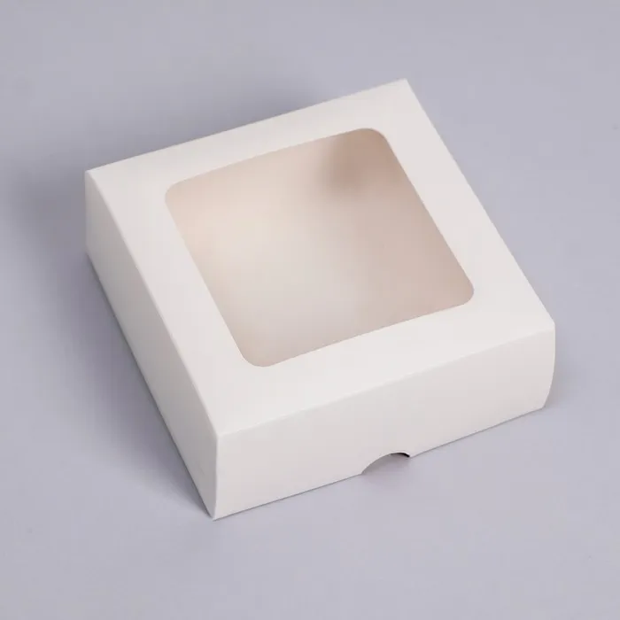 Коробка складная, крышка - дно, с окном, белая, 13×13×5 см — Характеристики