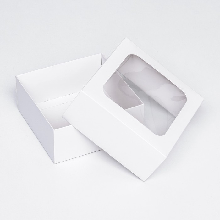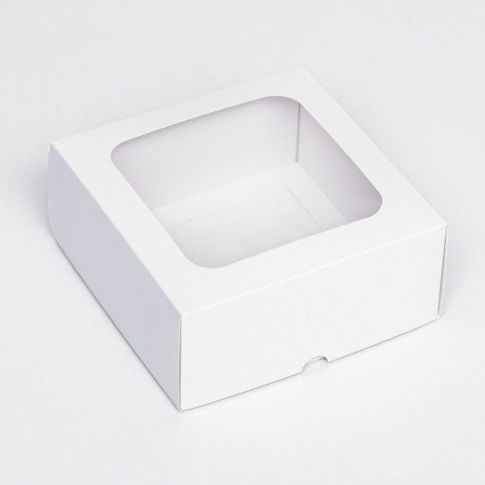 Коробка складная, крышка-дно, с окном, белый, 15×15×6.5 см