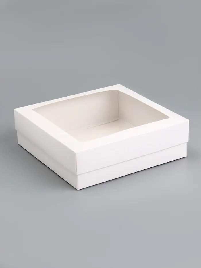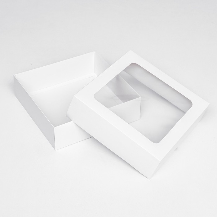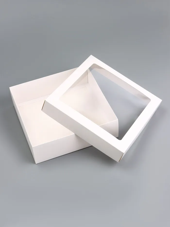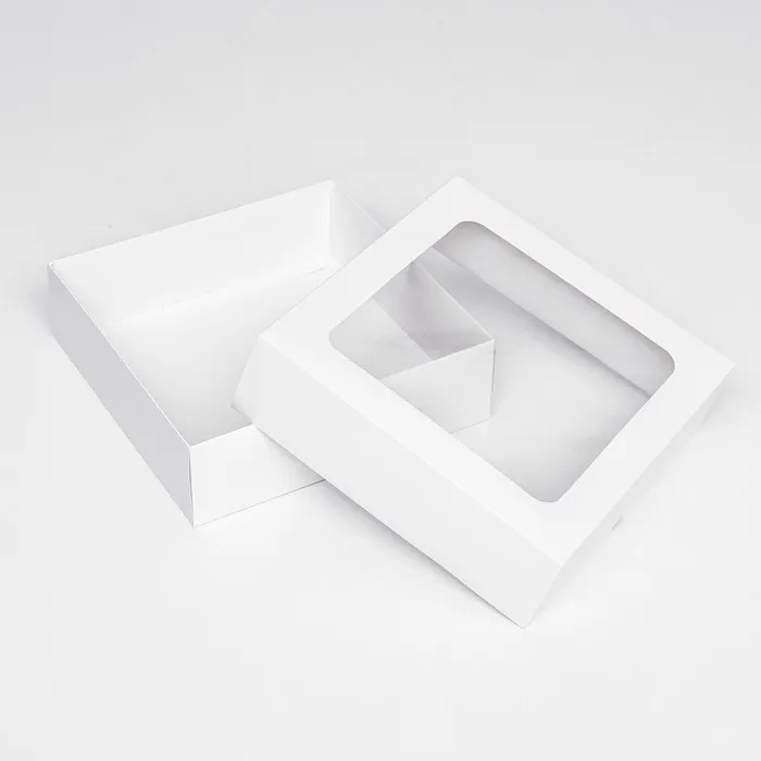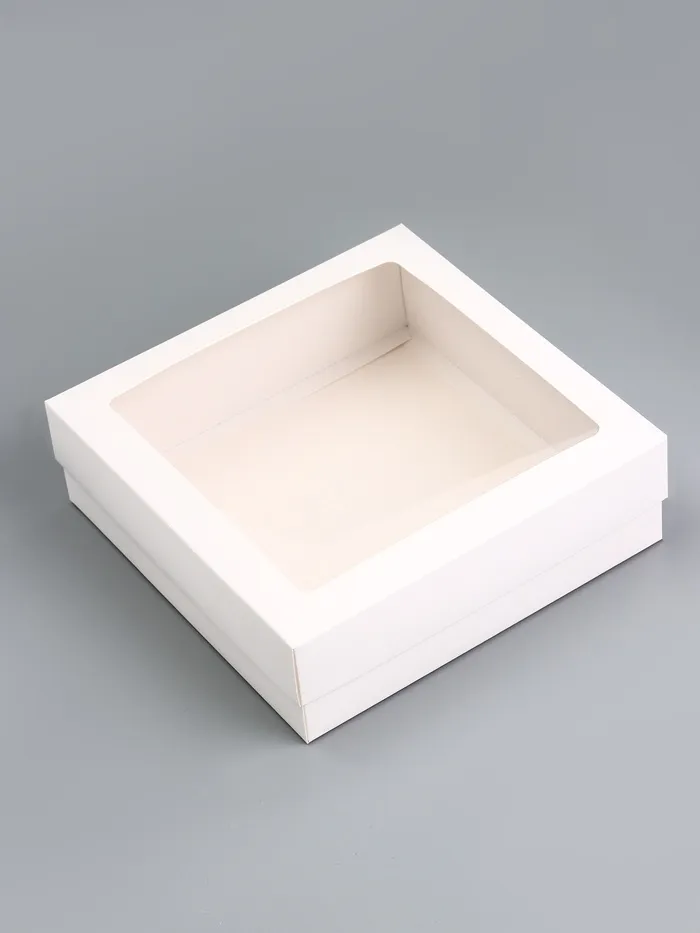 Коробка складная, крышка-дно, с окном, белый, 25×25×7.5 см — Характеристики