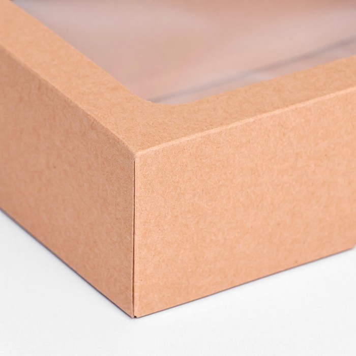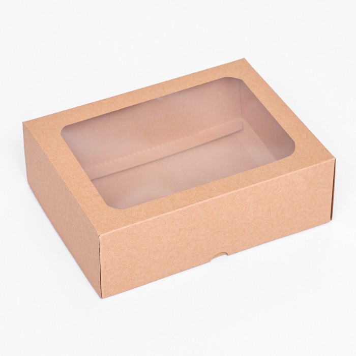 Коробка складная, крышка-дно, с окном, крафт, 20×15×6.5 см