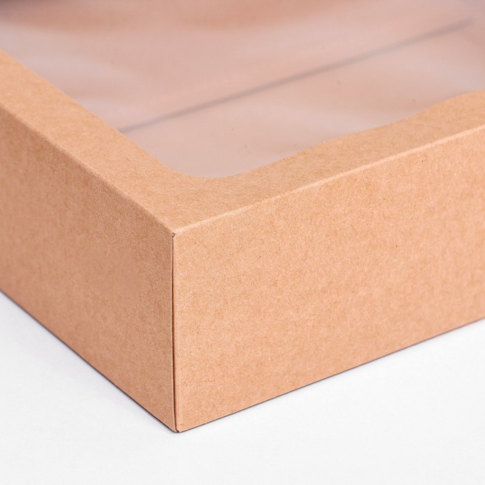 Коробка складная, крышка-дно, с окном, крафт, 25×18×6.5 см — Характеристики