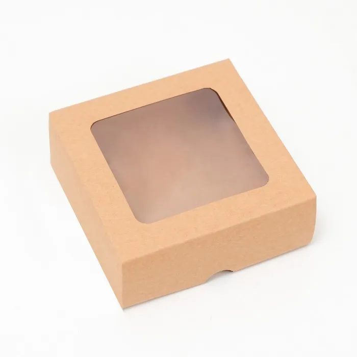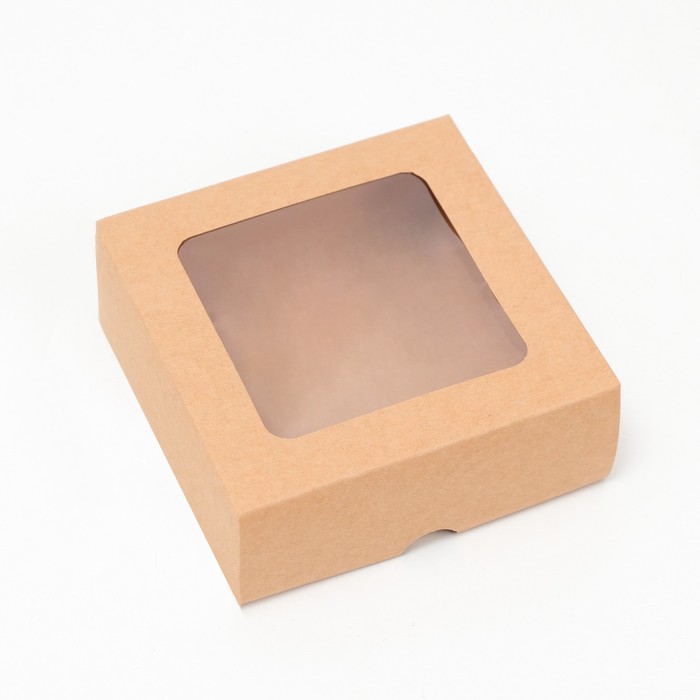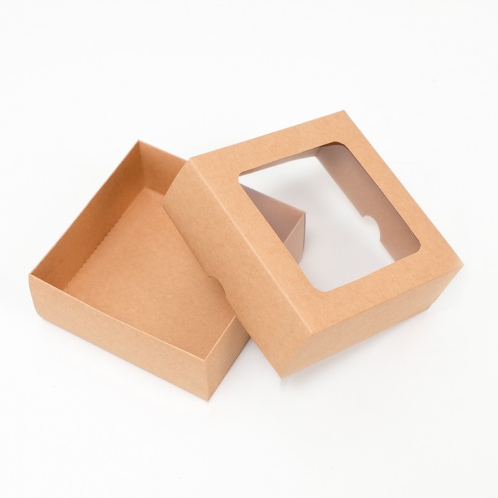 Коробка складная, крышка - дно, с окном, крафтовая, 13×13×5 см — Характеристики