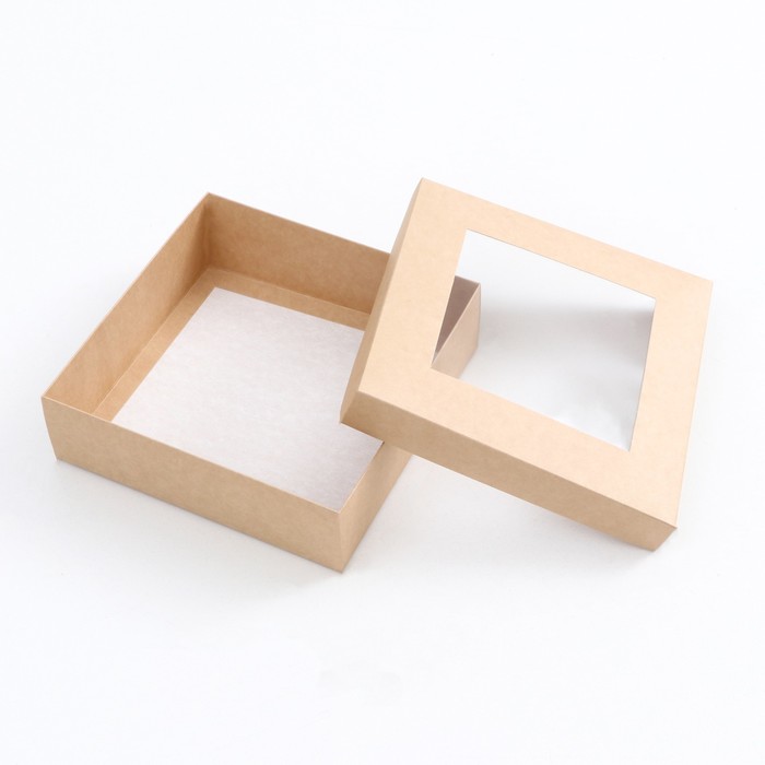 Крафт коробки с окошком идеально подходят для упаковки изделий ручной работы — кондитерских изделий, мыла, игрушек, текстильных изделий и т. п. Плотный картон надежно защищает товар от повреждений, а окошечко из прозрачного пластика позволяет покупателю сразу ценить товар, рассмотреть его и принять решение о покупке.