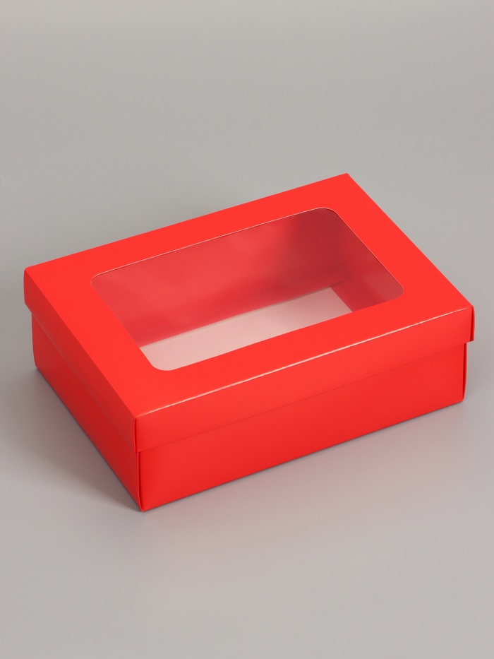 Коробка складная, крышка-дно, с окном, красная, 24×17×8 см — Характеристики