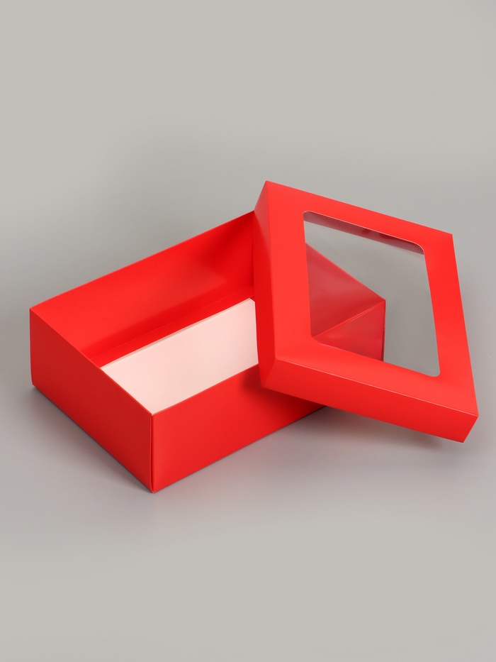 Яркая упаковка с элементом интриги! Складная коробка с окошком «Красный» – это вместительная упаковка из плотного картона. Насыщенный цвет и прозрачная вставка делают подарок заметным и интригующим.