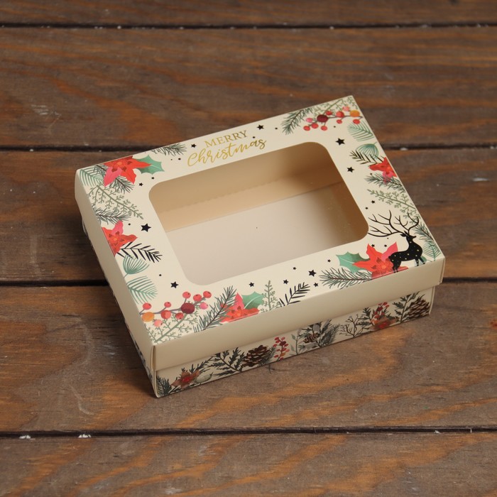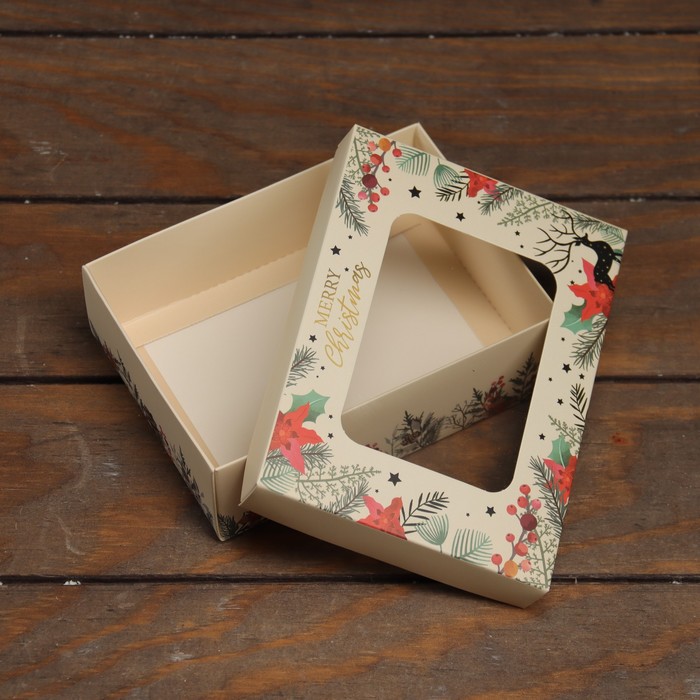 Коробка складная, крышка - дно, с окном MERRY CHRISTMAS 16.5×12.5×5.2 см — Характеристики