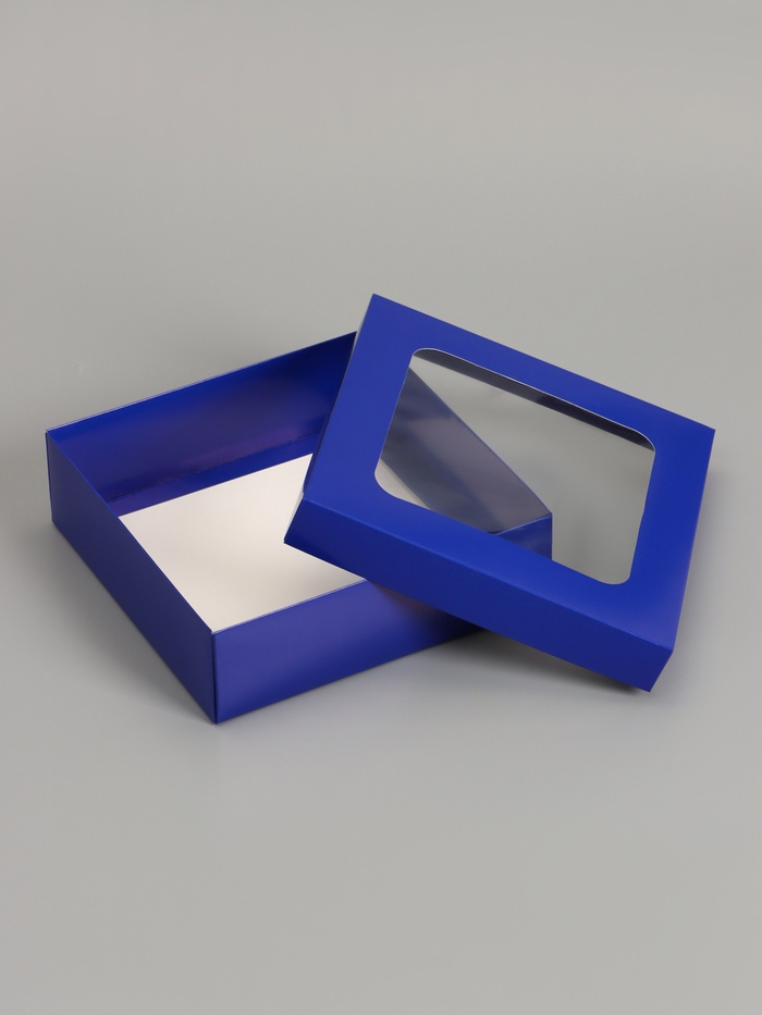 Коробка складная, крышка-дно, синяя, с окном 20×20×6 см — Характеристики