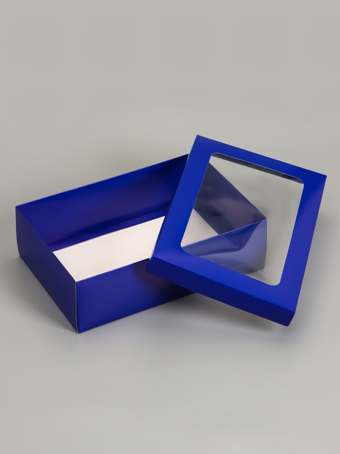 Коробка складная, крышка-дно «Синяя», с окном 30×20×9 см — Характеристики