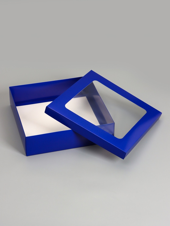 Коробка складная, крышка-дно, синяя, с окном, 30×30×8 см — Характеристики