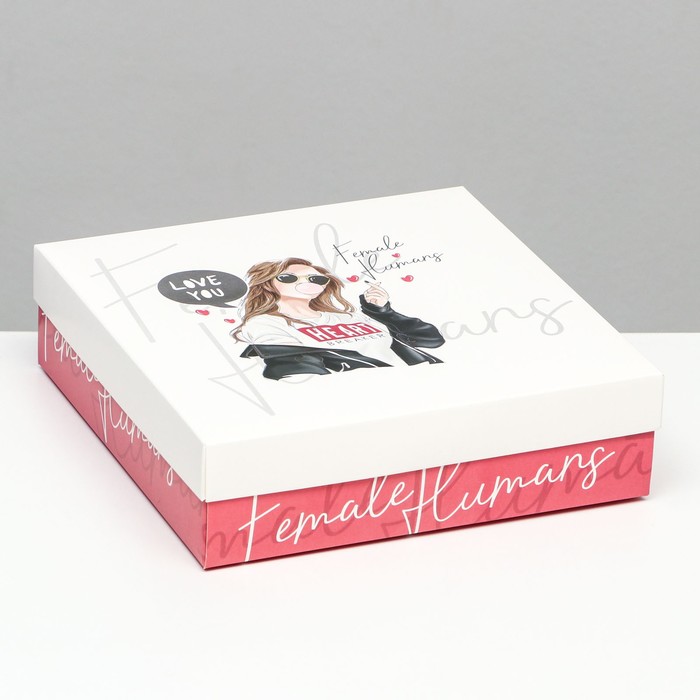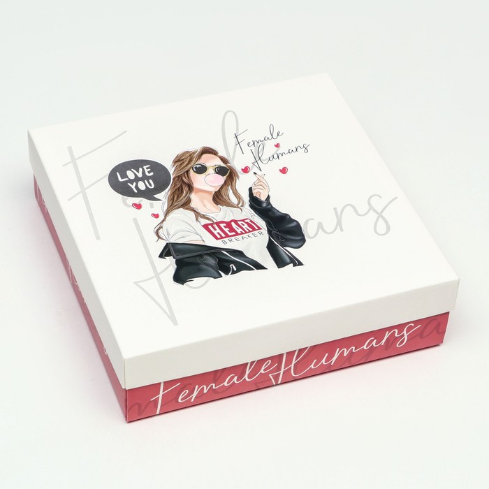 Коробка складная, квадратная, крышка-дно, "Любимой девушке", 23×23×6.5 см
