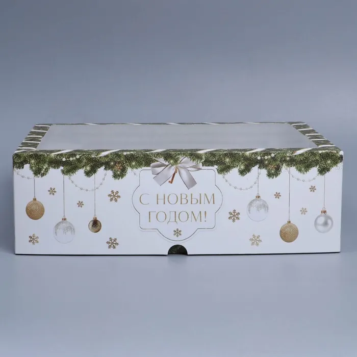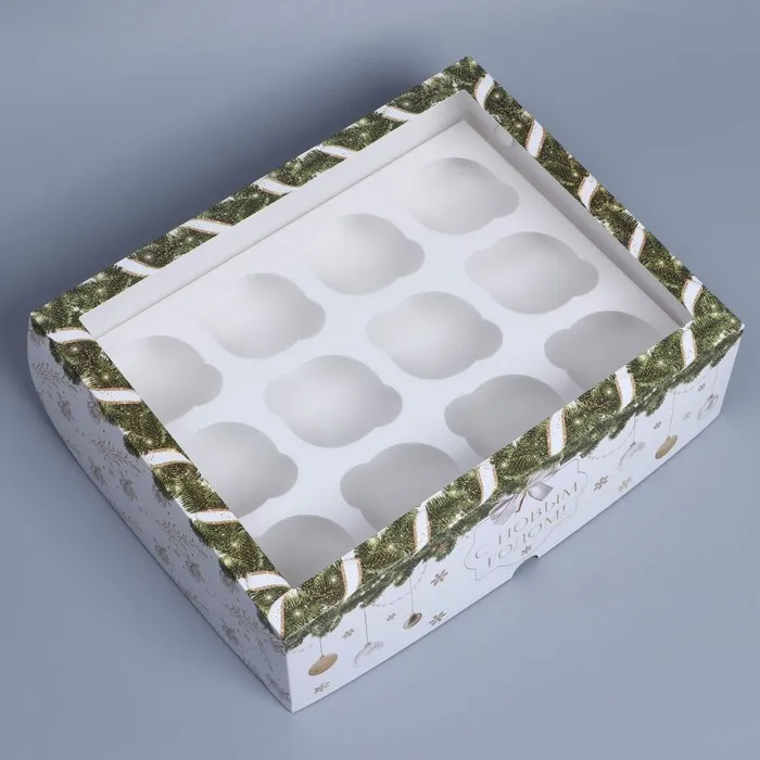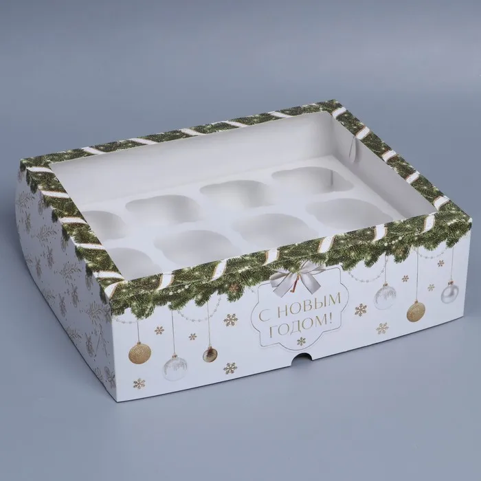 Коробка складная на 12 капкейков с окном «С Новым годом!» 32,8 х 25,6 х 10 см — Характеристики