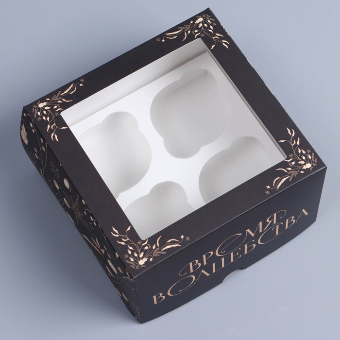 Коробка складная на 4 капкейков с окном «Время волшебства», 16 х 16 х 10 см — Характеристики