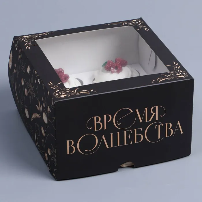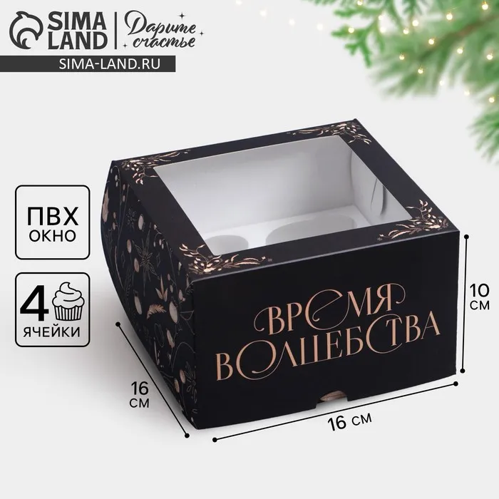 Коробка складная на 4 капкейков с окном «Время волшебства», 16 х 16 х 10 см — Характеристики