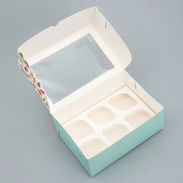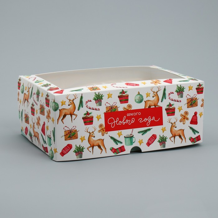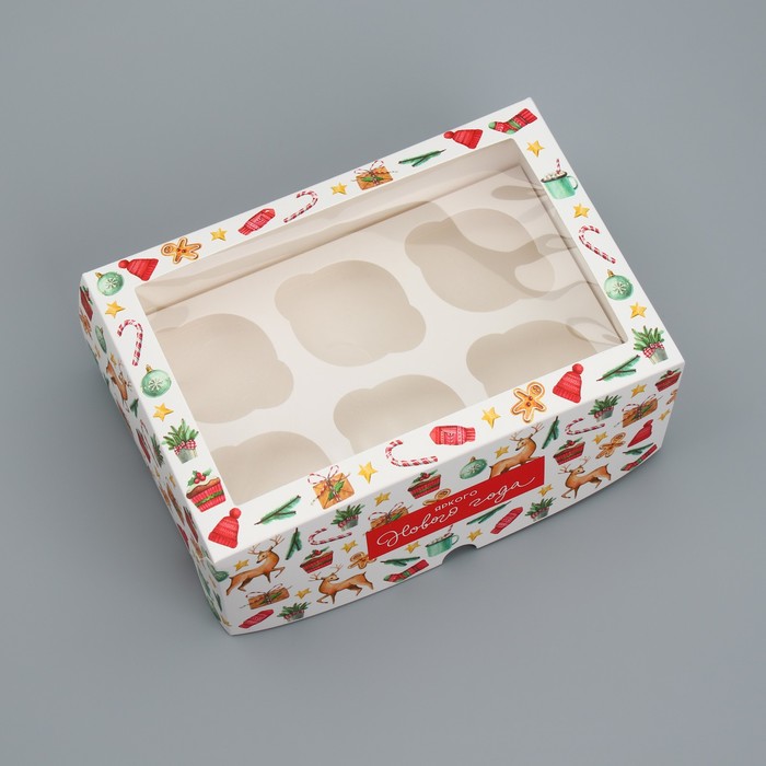 Коробка складная на 6 капкейков с окном «Яркого Нового года», 25 х 17 х 10 см