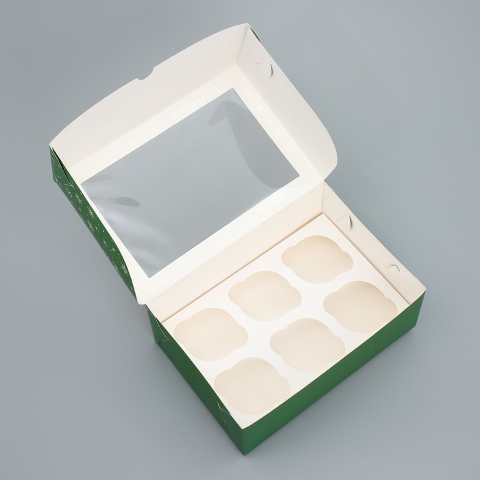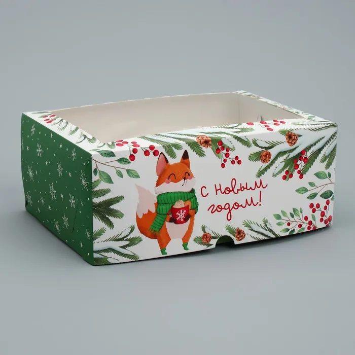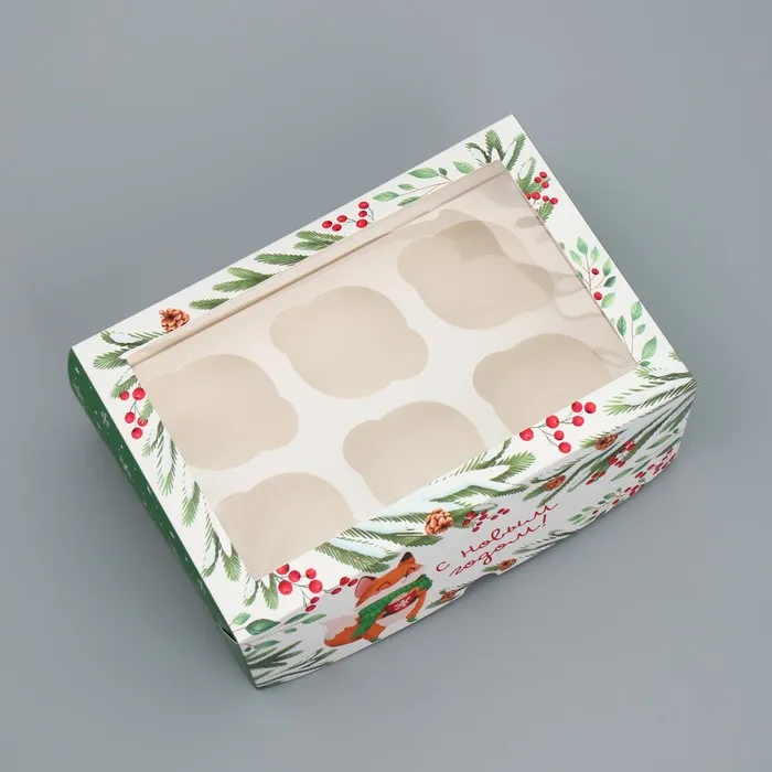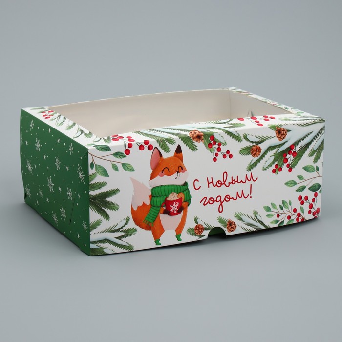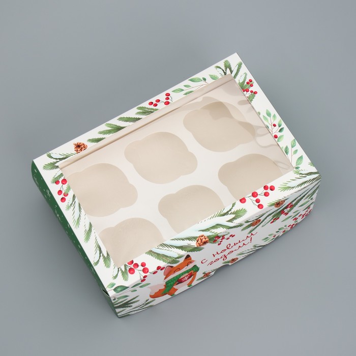 Коробка складная на 6 капкейков с окном «С Новым годом!», лисичка, 25 х 17 х 10 см — Характеристики