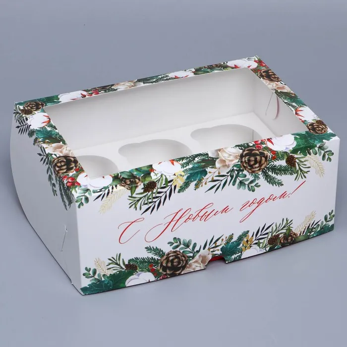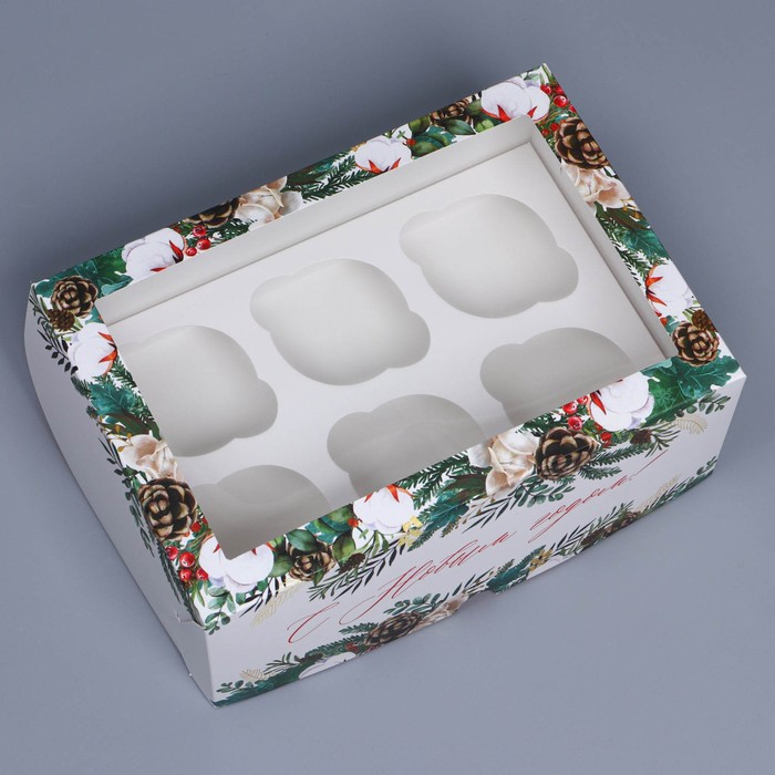 Коробка складная на 6 капкейков с окном «Веточки», 25 х 17 х 10 см — Характеристики