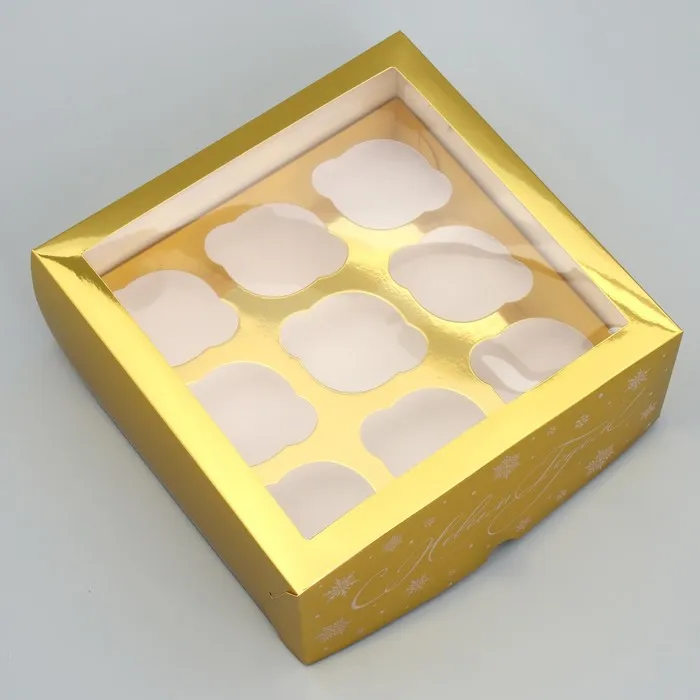 Коробка складная на 9 капкейков с окном «С Новым Годом», 25 х 25 х 10 см — Характеристики