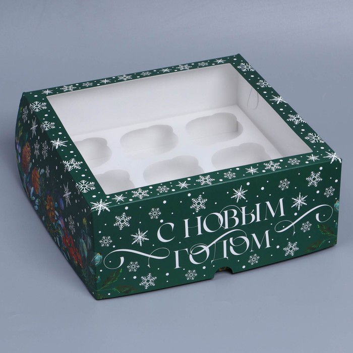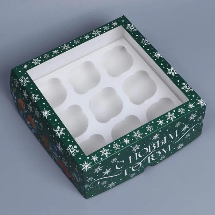 Коробка складная на 9 капкейков с окном «Зимний сад», 25 х 25 х 10 см — Характеристики