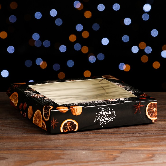 Изготовленная из прочного картона, эта коробка имеет размеры 20 x 20 x 4 см, что позволяет разместить в ней достаточное количество леденцов для украшения новогодней елки или праздничного стола.