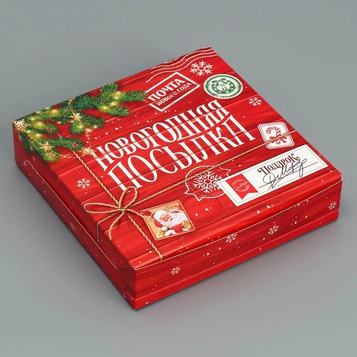 Коробка складная «Новогодняя посылка», 14 х 14 х 3,5 см — Характеристики