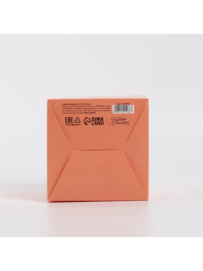 Коробка складная «Персиковая», 12 х 12 х 12 см — Характеристики