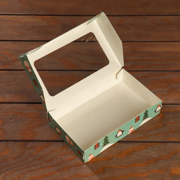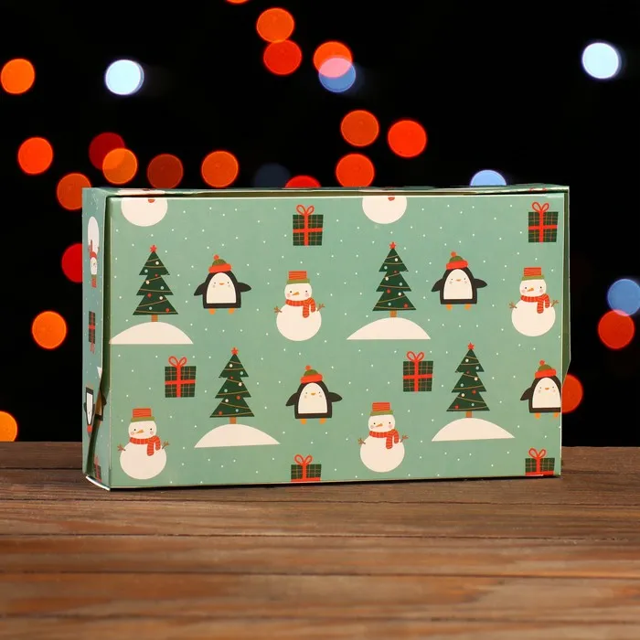 Коробка складная «Пингвины и снеговики», зеленая, 20×12×4 см — Характеристики