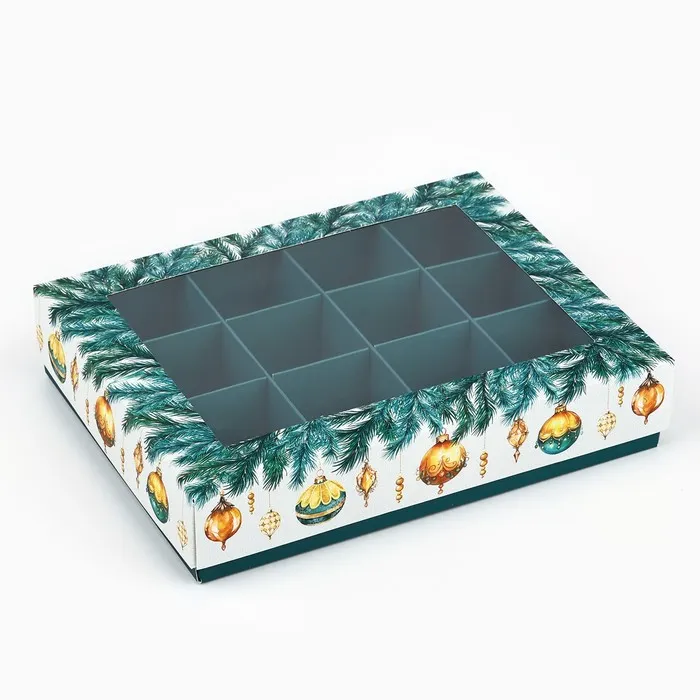 Коробка складная под 12 конфет «Ёлочные игрушки», 14.4 х 18.4 х 3.8 см — Характеристики