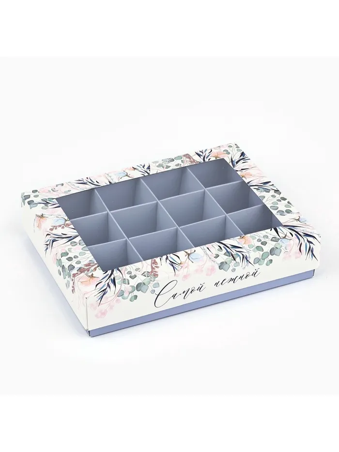 Коробка складная под 12 конфет «Самой нежной», 14.4×18.4×3.8 см — Характеристики