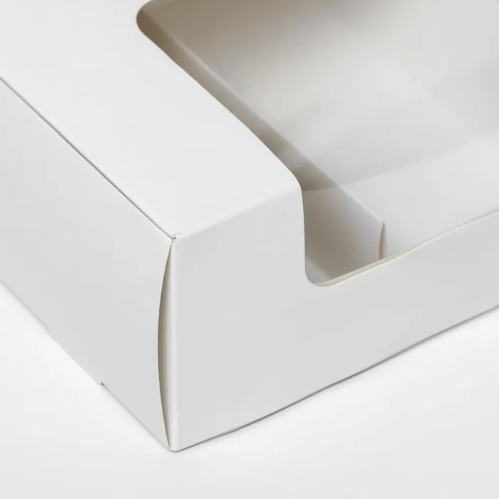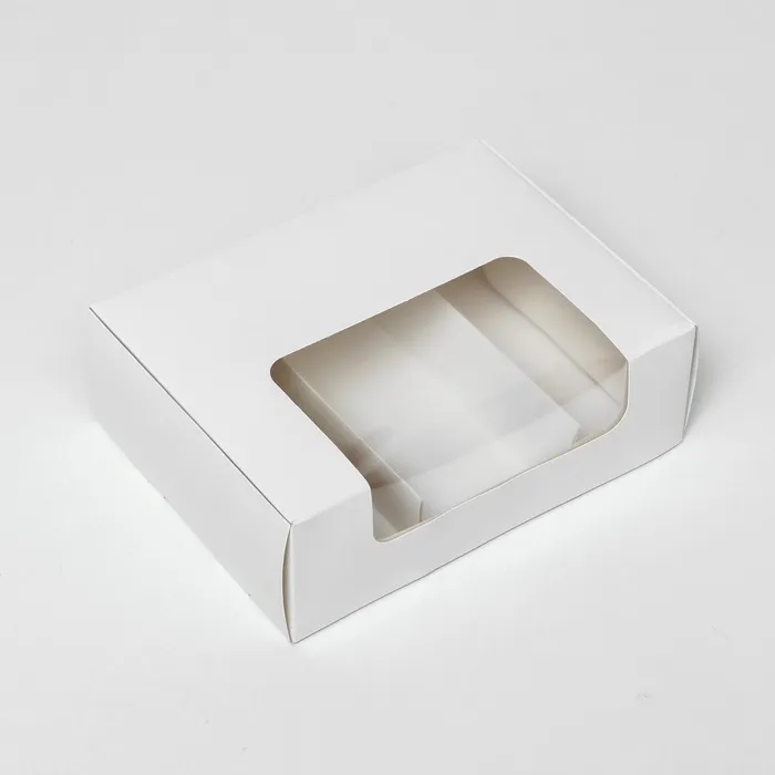 - Практичный дизайн: Прямоугольная форма и удобные размеры (20×20×5 см) обеспечивают отличное размещение выпечки. Белый цвет добавляет элегантности и подчеркивает презентабельность содержимого.