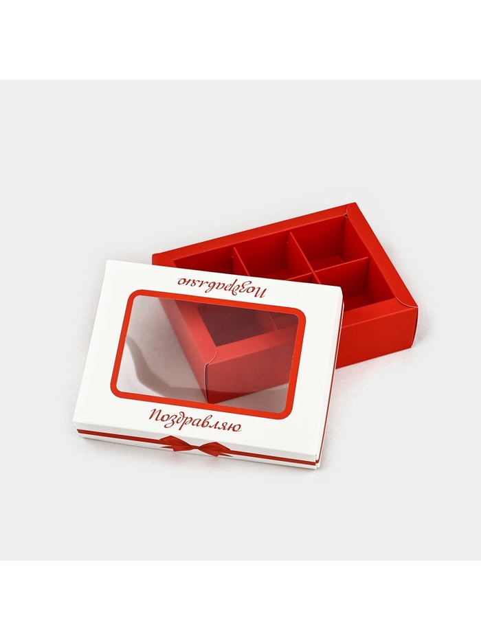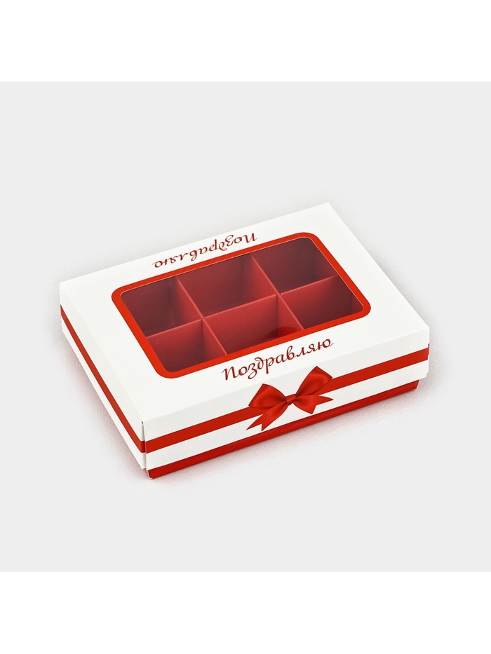 Коробка складная под 6 конфет «Поздравляю», 13.5×9.8×3.8 см — Характеристики