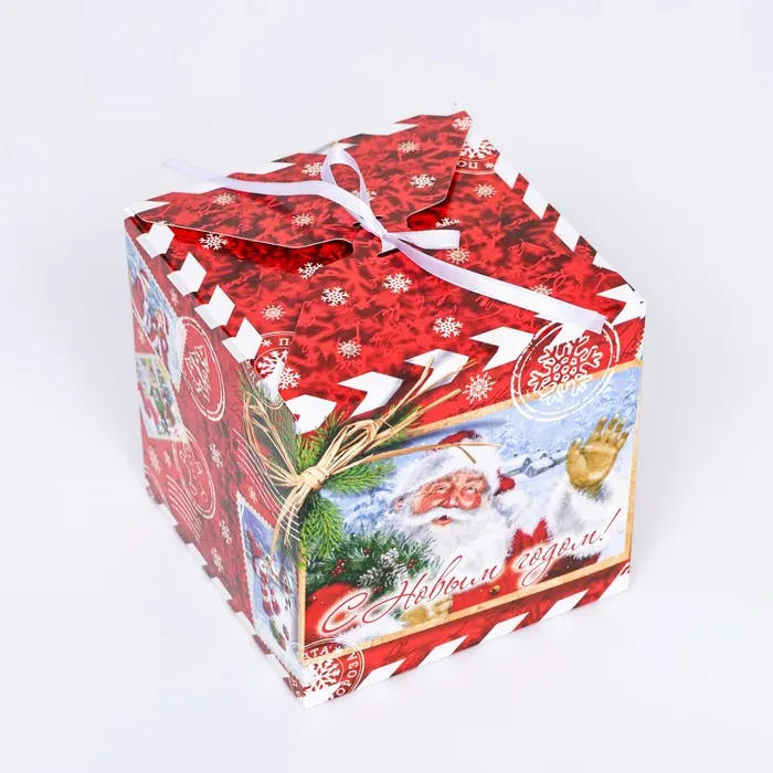Коробка складная, подарочная новогодняя « Дед Мороз» 14×14×14 см — Характеристики