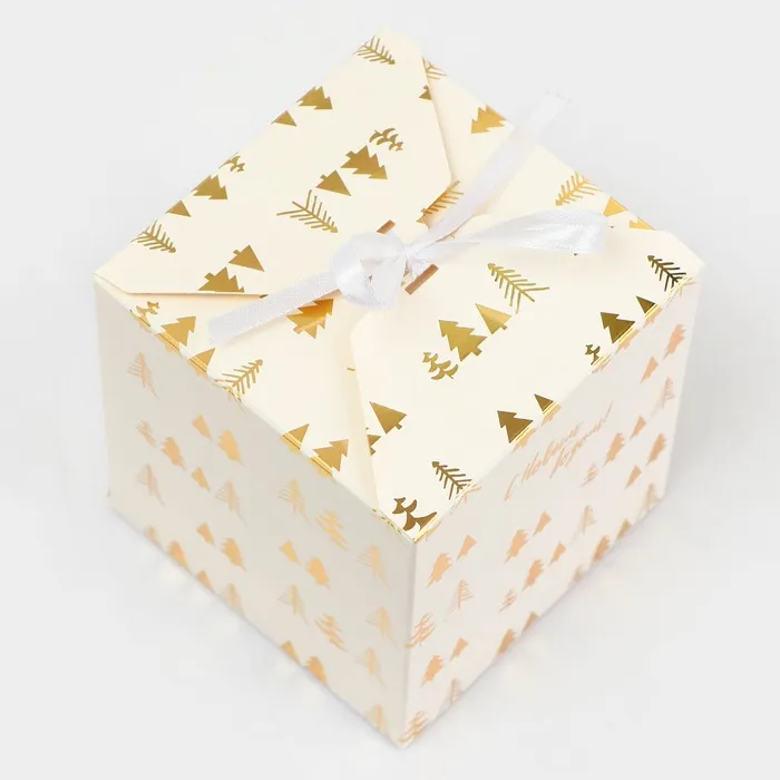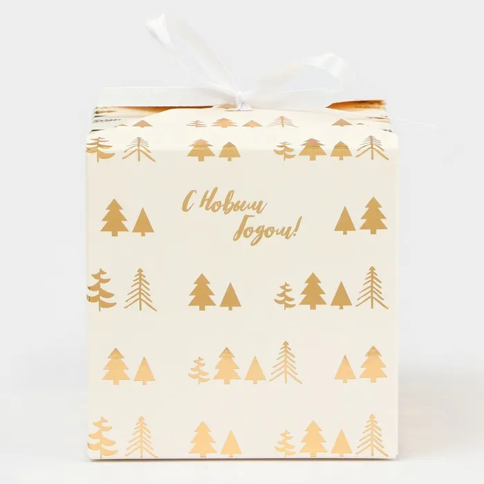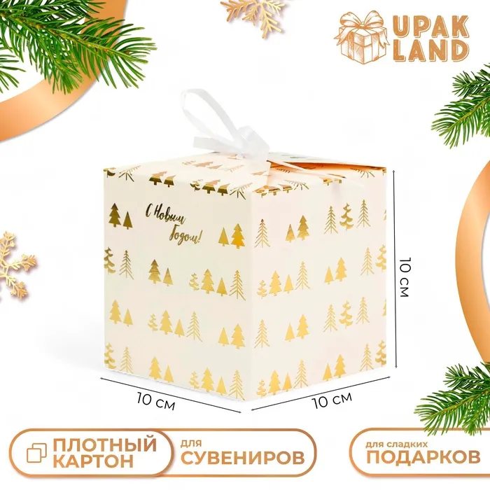 Коробка складная, подарочная новогодняя «Ёлки» 10×10×10 см — Характеристики