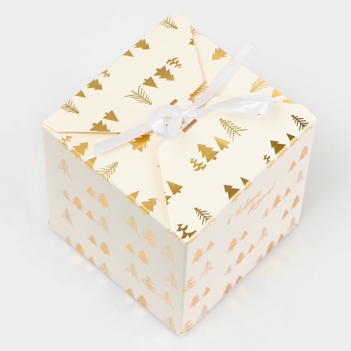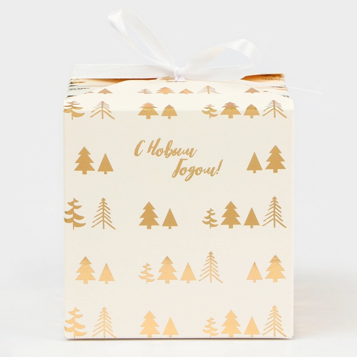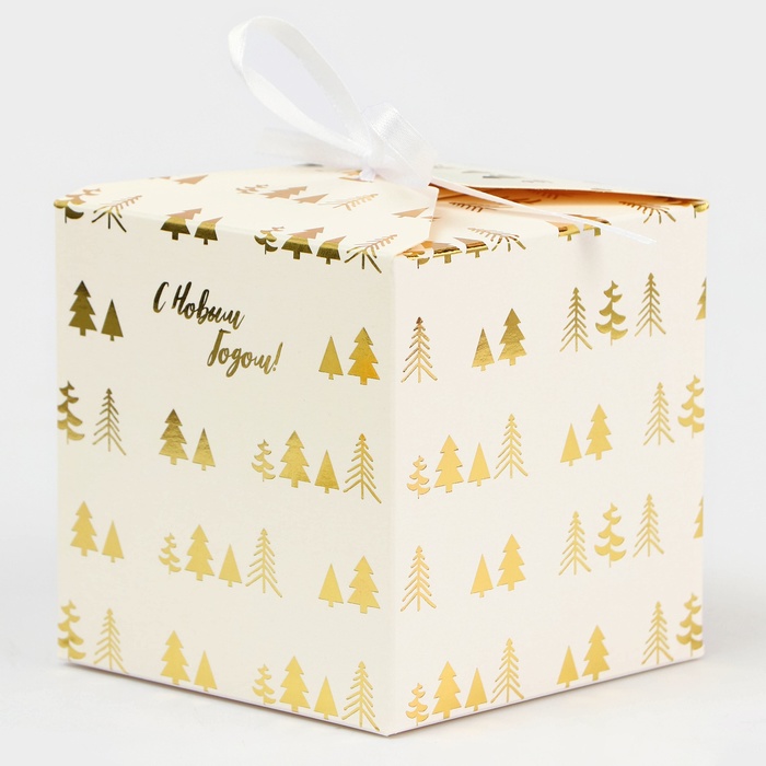 Коробка складная, подарочная новогодняя «Ёлки» 10×10×10 см