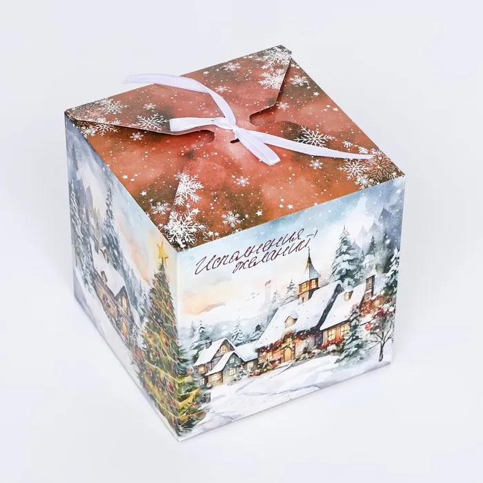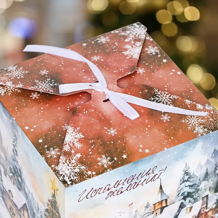 Коробка складная, подарочная новогодняя «Исполнение желаний» 14×14×14 см — Характеристики
