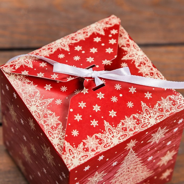 Коробка складная, подарочная новогодняя «С Новым годом и Рождеством» 12×12×12 см — Характеристики