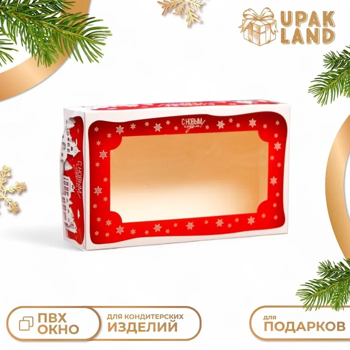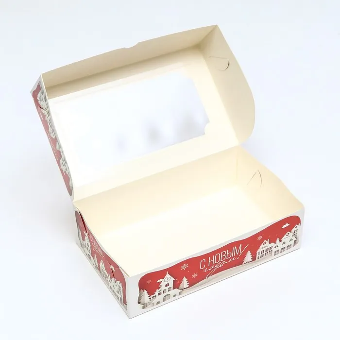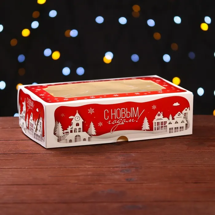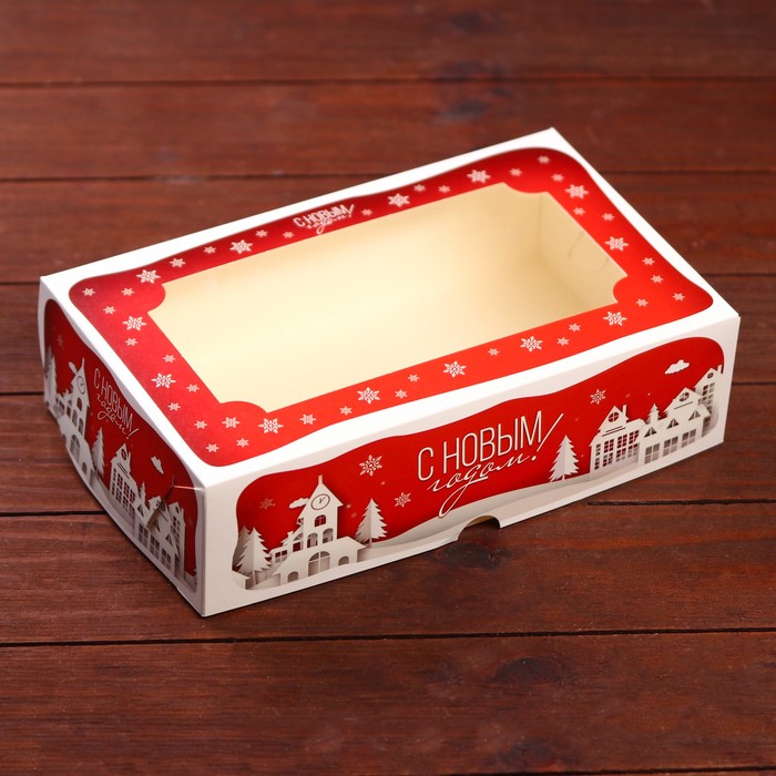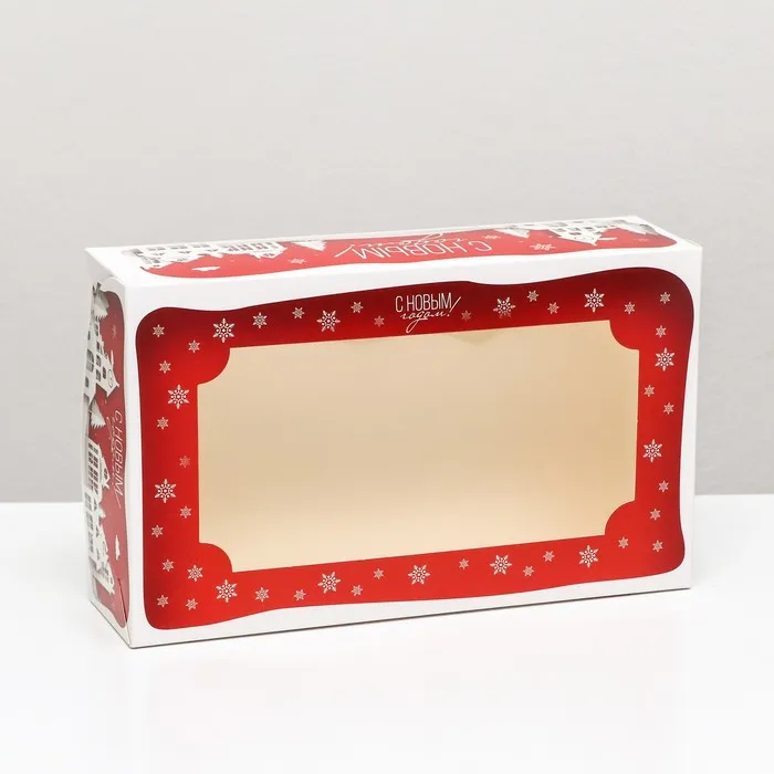 Коробка складная, подарочная новогодняя с окном под зефир «Дом Деда Мороза», 25×15×7 см — Характеристики