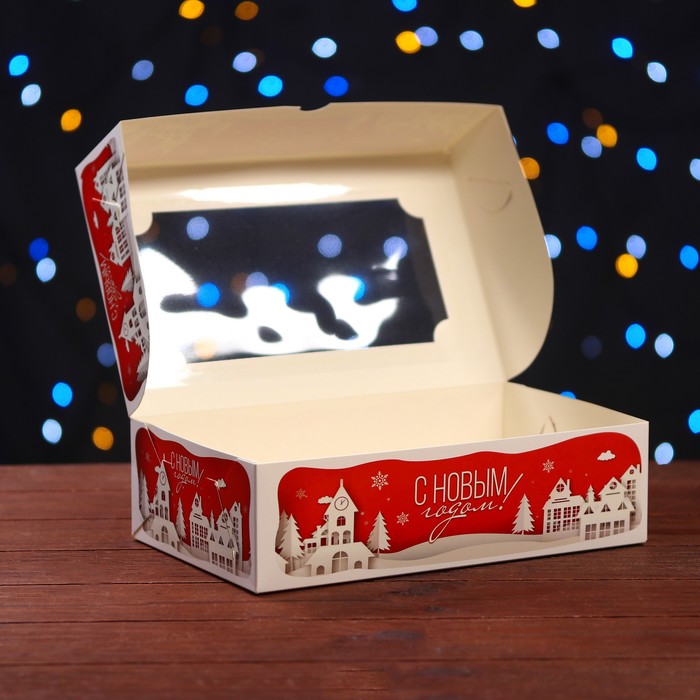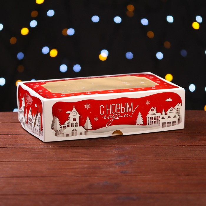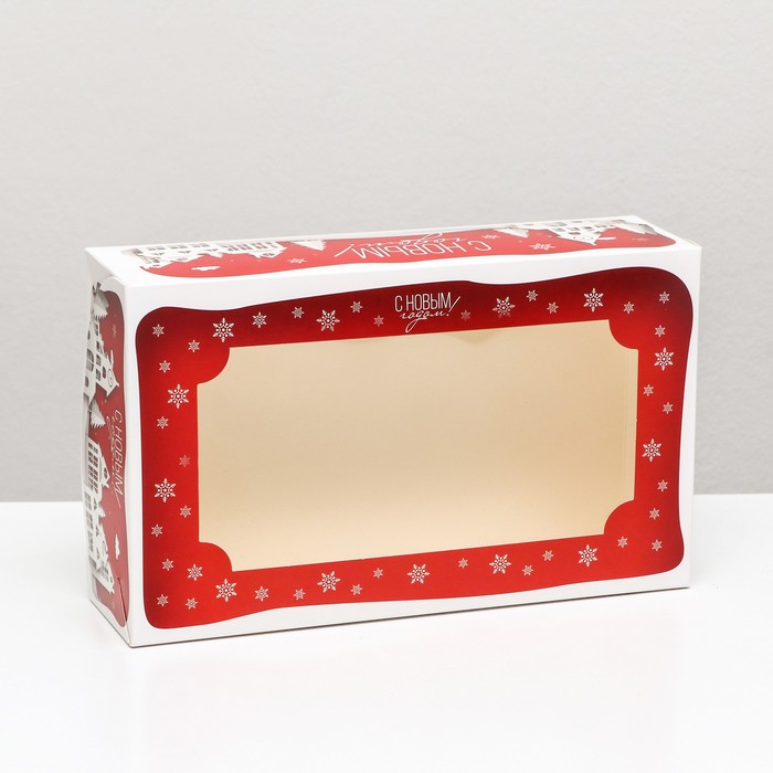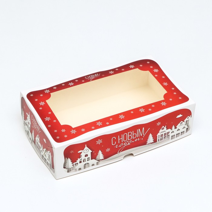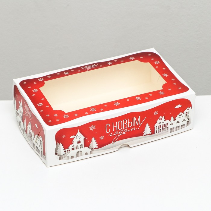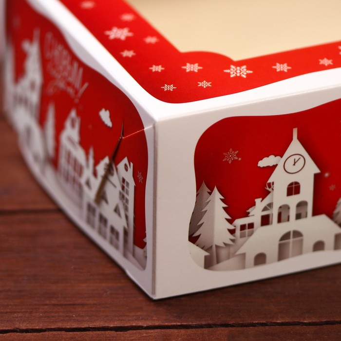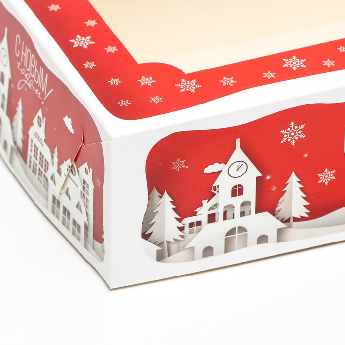 Коробка складная, подарочная новогодняя с окном под зефир «Дом Деда Мороза», 25×15×7 см — Характеристики