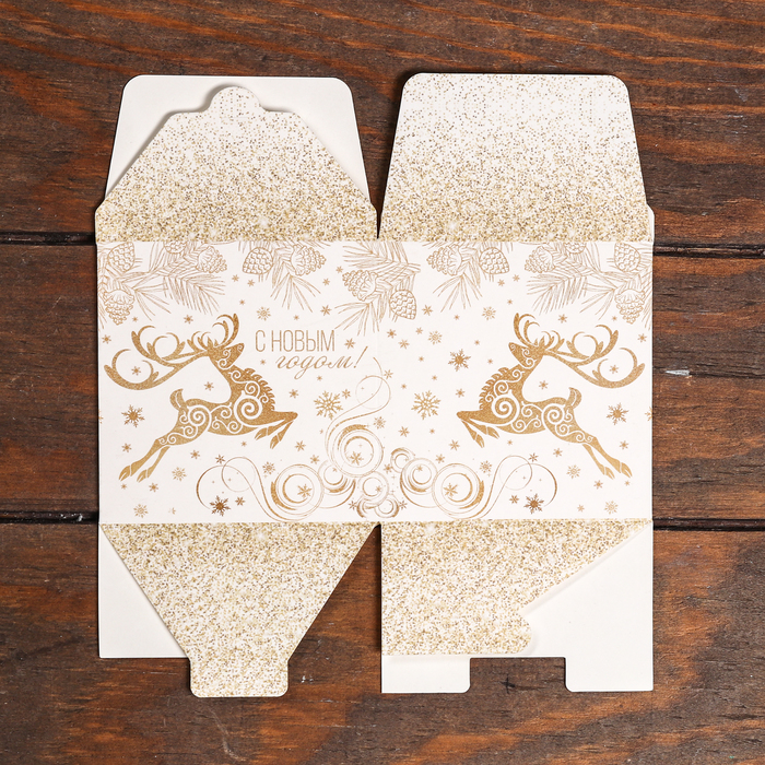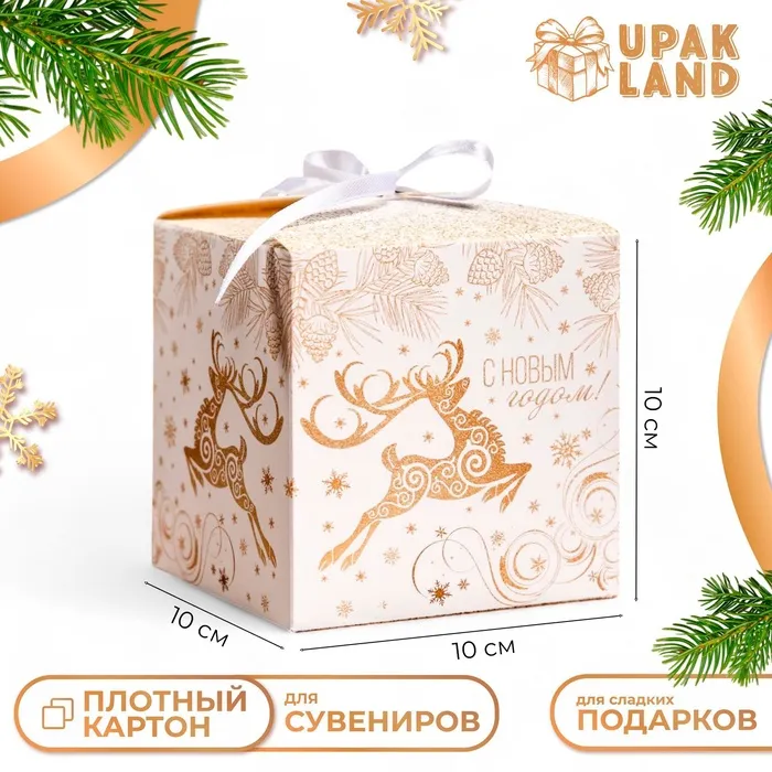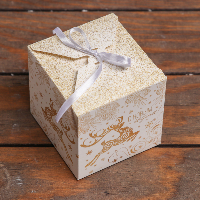 Коробка складная, подарочная новогодняя «Снежные олени» 10×10×10 см — Характеристики