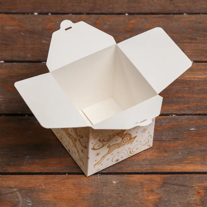Коробка складная новогодняя - идеальное решение для упаковки и подарка новогодних сюрпризов. Её праздничный дизайн с символами Нового года создает особую атмосферу и делает эту коробку идеальным выбором для упаковки подарков в преддверии праздника. Подарите радость и праздничное настроение в компактной и удобной коробке.