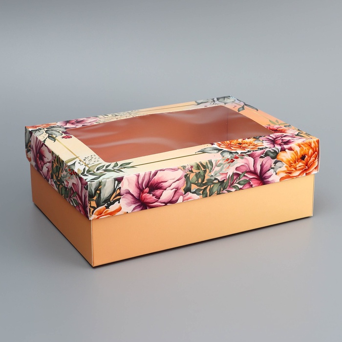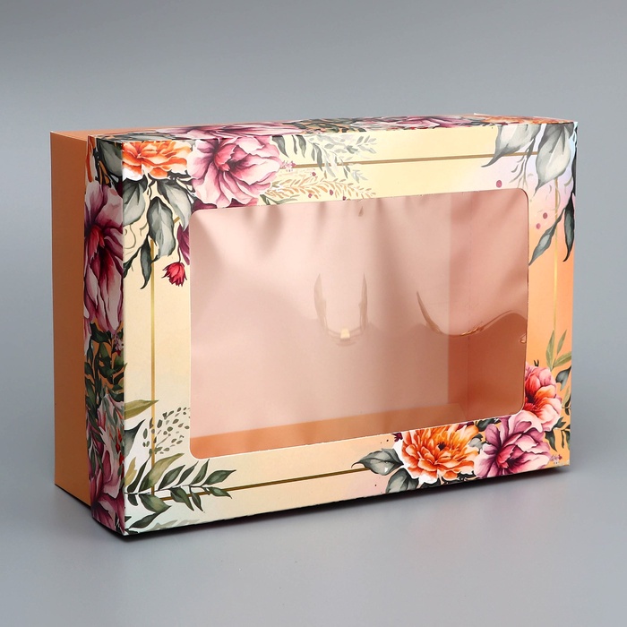 Коробка складная подарочная «Цветочки», 24×17×8 см с окном — Характеристики