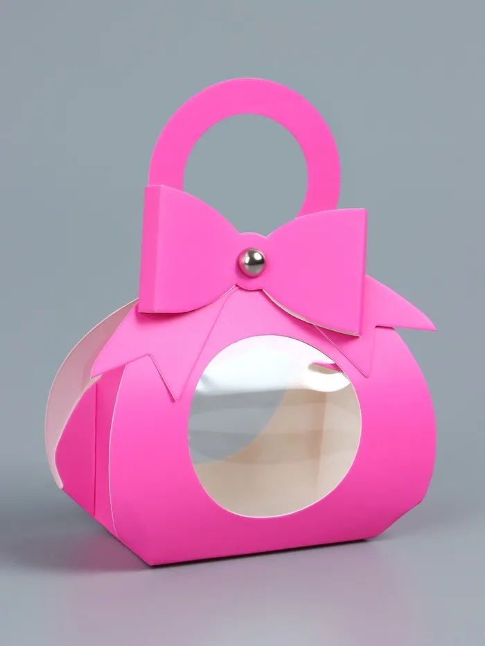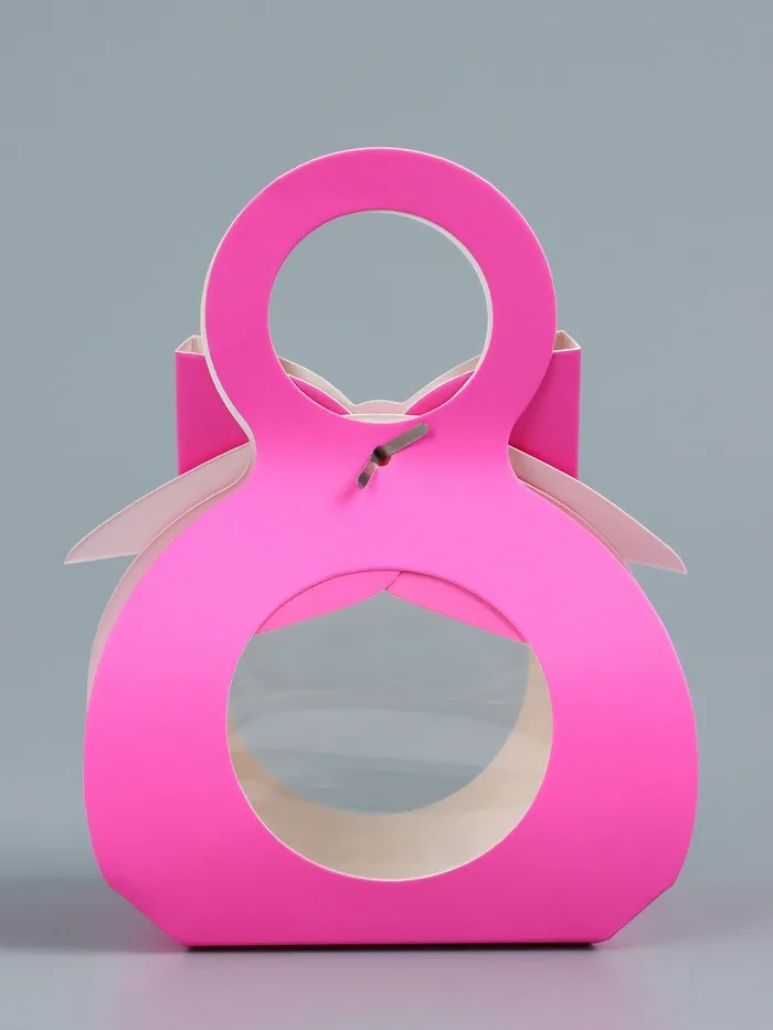 Элегантный дизайн в виде сумочки дополнен аккуратным бантом и удобной ручкой, которые придают упаковке особый шарм и подчеркивают её уникальность. Розовый цвет добавляет нотку романтики и нежности, делая эту коробочку подходящей для любых торжественных случаев, включая дни рождения, юбилеи, свадьбы и другие значимые мероприятия.
